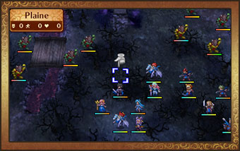 Terrain d’entraînement utilisant le niveau La Légion de bois de Fire Emblem: Shadow Dragon. |