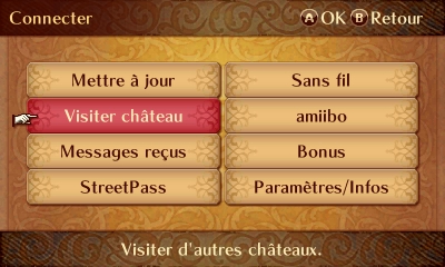 Dans votre château, vous pouvez visiter celui des autres via streetpass ou internet. De même, vous pouvez être amenés à recevoir des visiteurs.